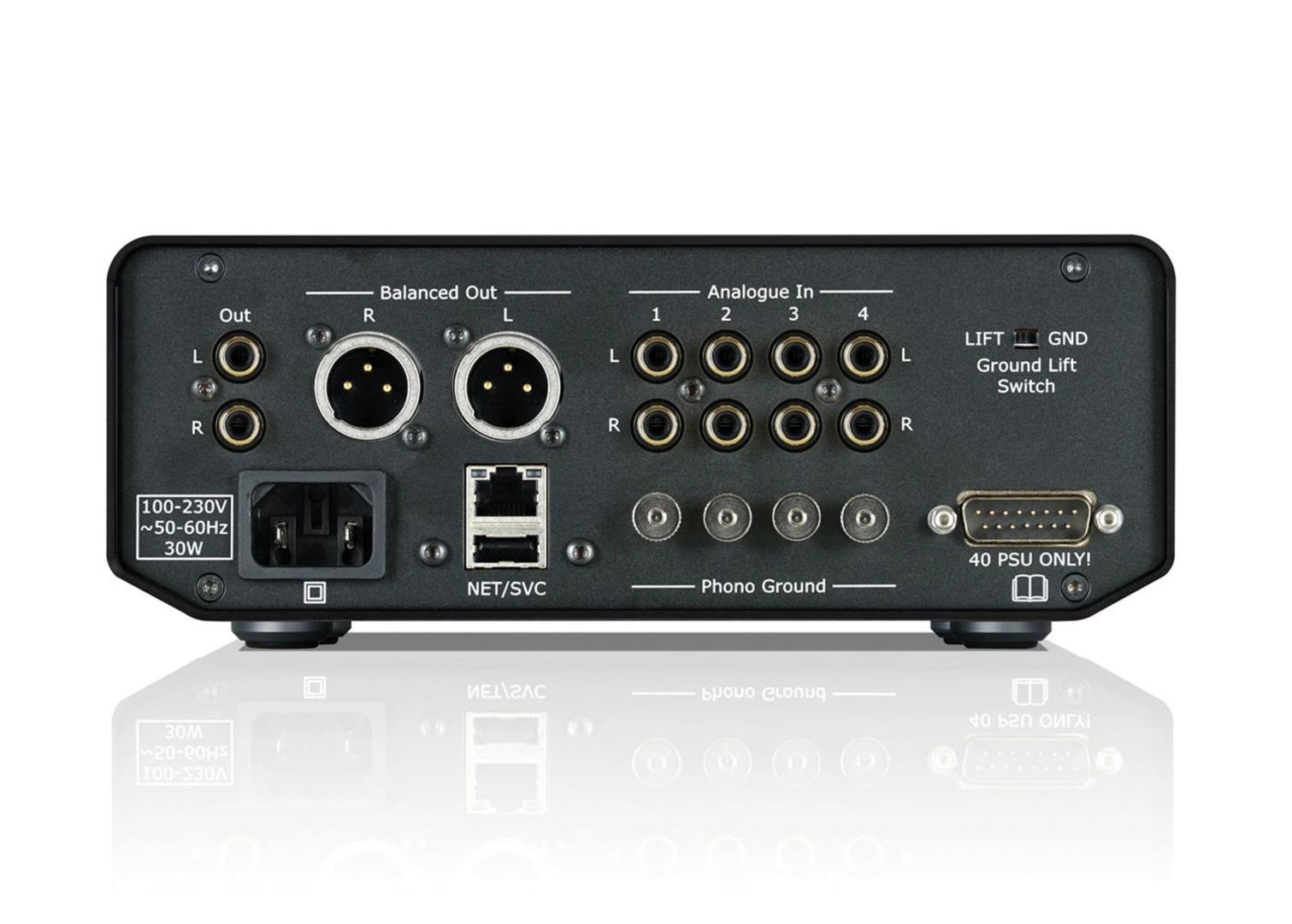 Je nach Systemkonfiguration bietet der 40 PPA sowohl symmetrische XLR- als auch unsymmetrische Cinch-Ausgänge. Der 40 PPA verfügt über ein hochleistungsfähiges und sehr rauscharmes Gleichstromnetzteil. Dadurch kann der Vorverstärker einen extrem großen Dynamikbereich bereitstellen und so erweiterte Signalpegel lange vor dem Übersteuern gewährleisten. Ein sorgfältig gewähltes Schaltungslayout und die Platzierung der Komponenten gewährleisten ein sehr geringes Grundrauschen und erweitern so die musikalische Dynamik.